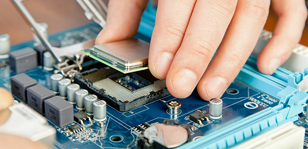 Сотрудник исполняет работу: заменяет сломанную комплектующую рабочей оригинальной комплектующей